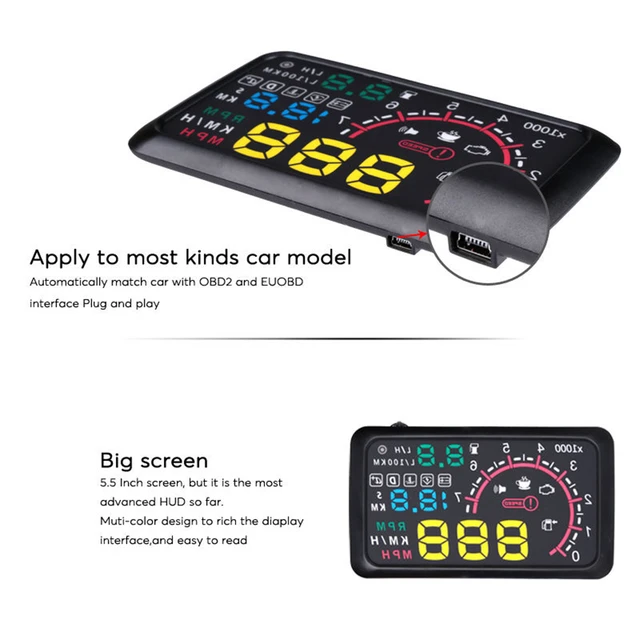 هذا المنتج هو لسلامة السائقين ، بسرعات عالية ، وخاصة في القيادة عالية السرعة في الليل ، من أجل تجنب السائق للنظر إلى أسفل رأسهم لمشاهدة الصك ، وانخفاض حادث سيارة. يمكن لـ HUD عرض المعلومات الهامة التي يعرضها الصك (مثل السرعة) على الزجاج الأمامي ، فإنه لا يمكن فقط للمساعدة في تحديد سرعة المبتدئين عديمي الخبرة للسيطرة على سرعتها وتجنب العديد من سرعة الحد الطريق بسبب انتهاك مسرعة. والأهم من ذلك ، فإنه يتيح للسائق قراءة على الفور عدد في رؤية كبيرة وجعل دائما السائقين عيون على الطريق في عقل واضح.